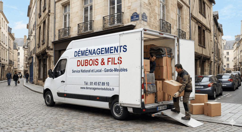 En zone urbaine (Paris, Lyon, Lille), comptez du temps supplémentaire pour trouver un stationnement adapté, poser un camion devant l’immeuble (voies souvent réglementées) et franchir escaliers ou ascenseurs. Prévoir des protections et couvertures pour les meubles ajoute environ 15–30 minutes.